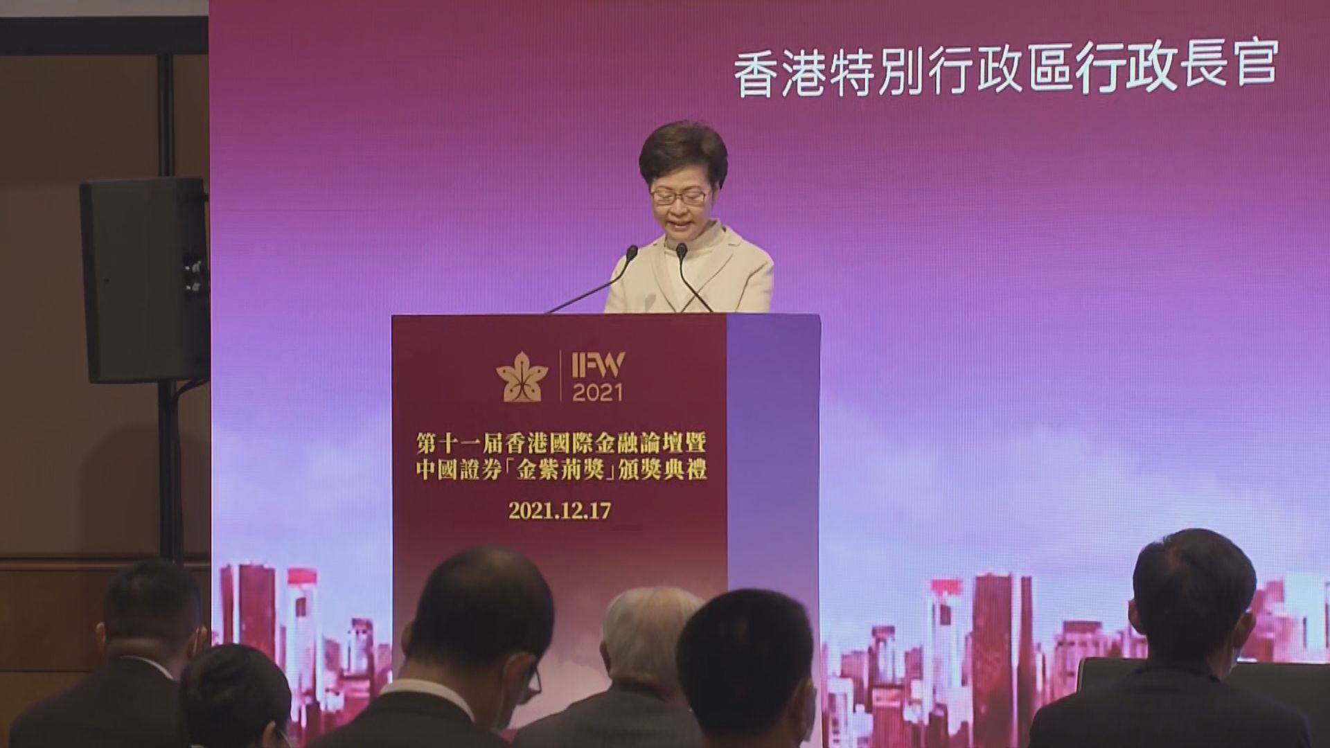 【Now新聞台】行政長官林鄭月娥出席一個國際金融論壇致辭指,最近本港政治及疫情環境穩定 ,經濟復甦進度良好。