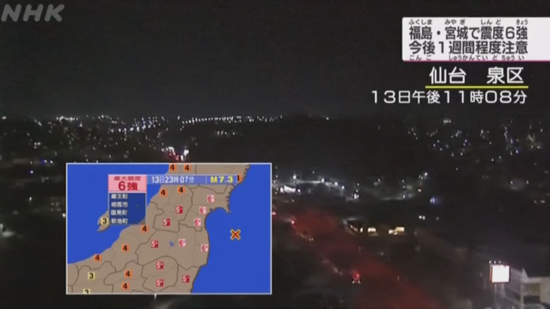 【Now新聞台】日本福島縣對開海域發生的強烈地震,氣象廳將地震強度由7.1級向上修訂為7.3級,多個縣市近100萬戶電力供應中斷,最少80人受傷。