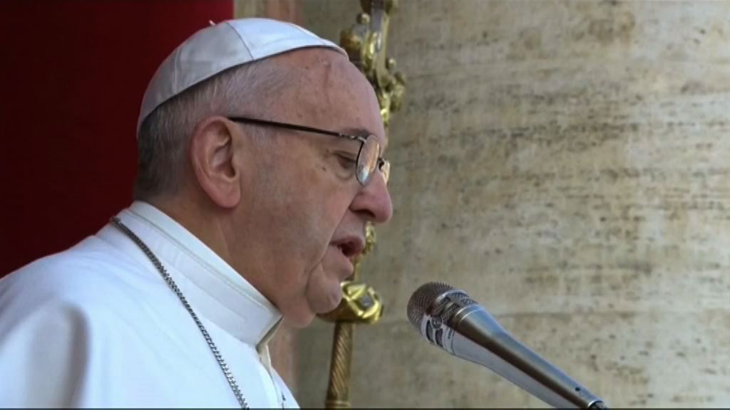 【Now新聞台】在梵蒂岡,教宗方濟各發表聖誕文告,呼籲國際社會致力結束敘利亞內戰,又特別為近期多宗恐襲的死難者及其家屬祈禱。
