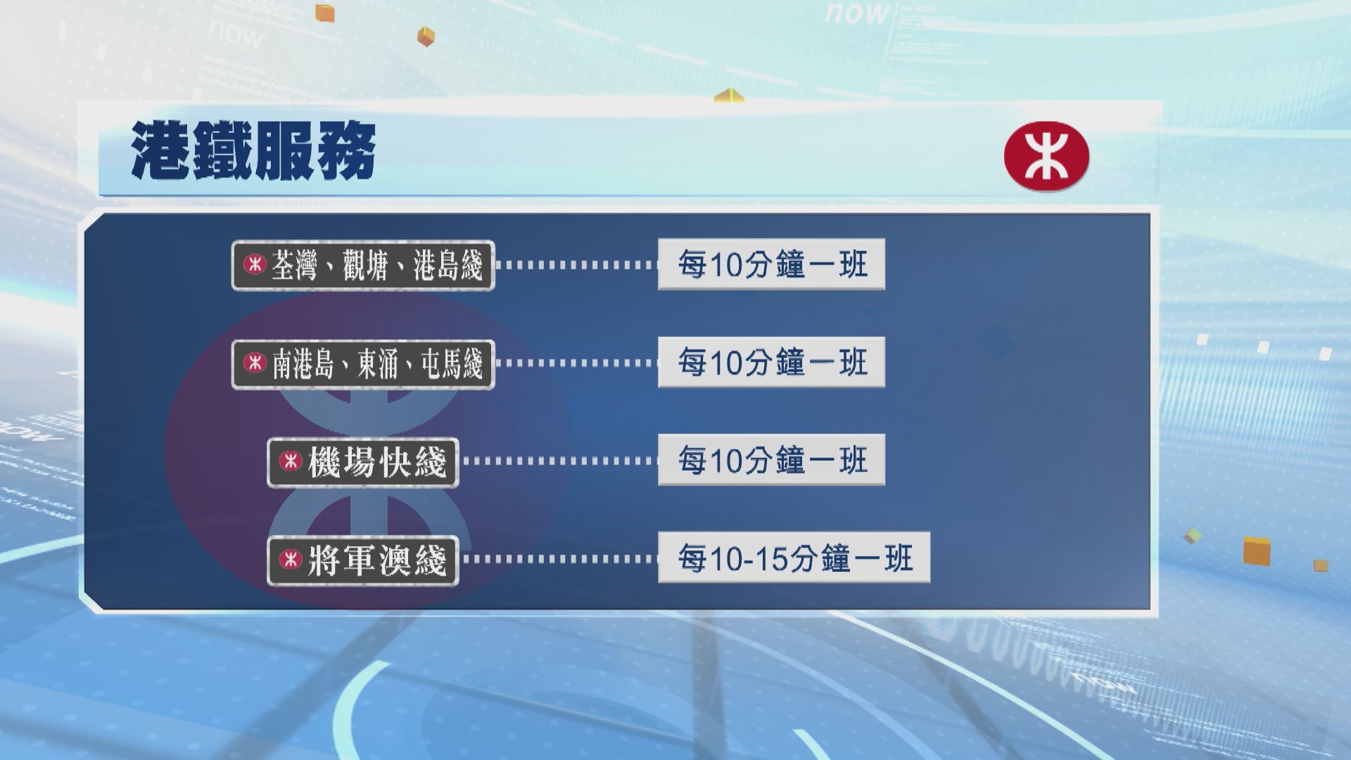【Now新聞台】塔巴逼近,港鐵維持正常服務,直至晚上收車。大部分巴士路線和渡輪服務會在八號信號生效後陸續暫停。