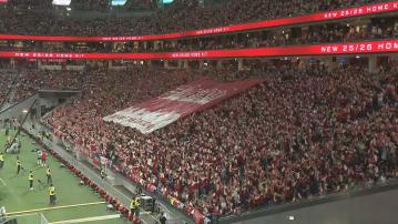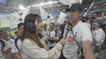 【Now新聞台】啟德主場館今晚上演英超勁旅阿仙奴及熱刺的首場海外「北倫敦打吡」,熱刺半場領先一比零,最開心當然是一眾熱刺球迷,而本台記者湯偉圓半場休息時正好身處熱刺球迷一方,在他們重重包圍下,親身感受到他們的喜悅和高漲的氣氛。