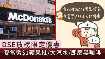 【Now.com】DSE文憑試明日(16日)放榜,不少品牌也相繼推出放榜日優惠。麥當勞宣布推出DSE應援優惠,由2025年7月14日起至7月18日,顧客可以$1享用蘋果批、大汽水和即磨黑咖啡。