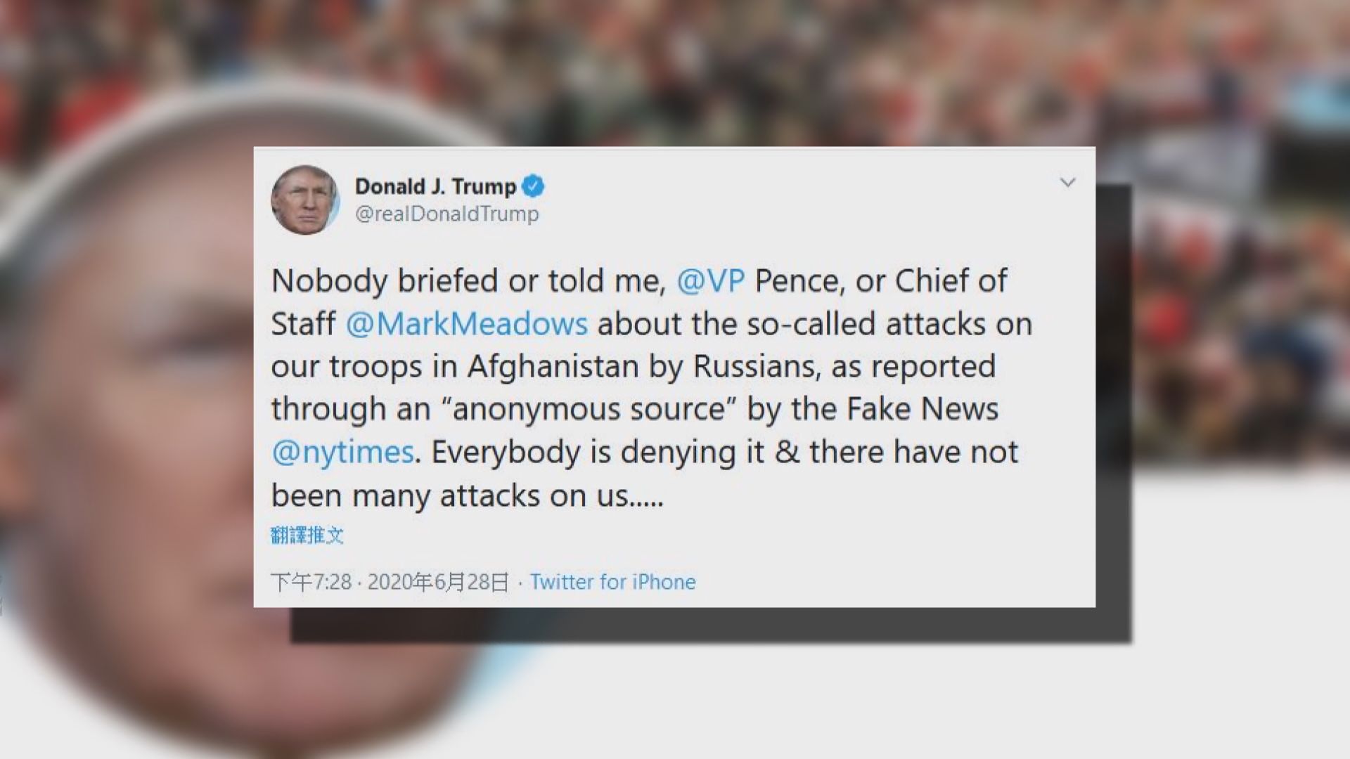 【Now新聞台】美國總統特朗普回應有報道指,俄羅斯懸賞塔利班武裝分子在阿富汗殺害英美士兵,他否認知悉事件,批評報道是假新聞。