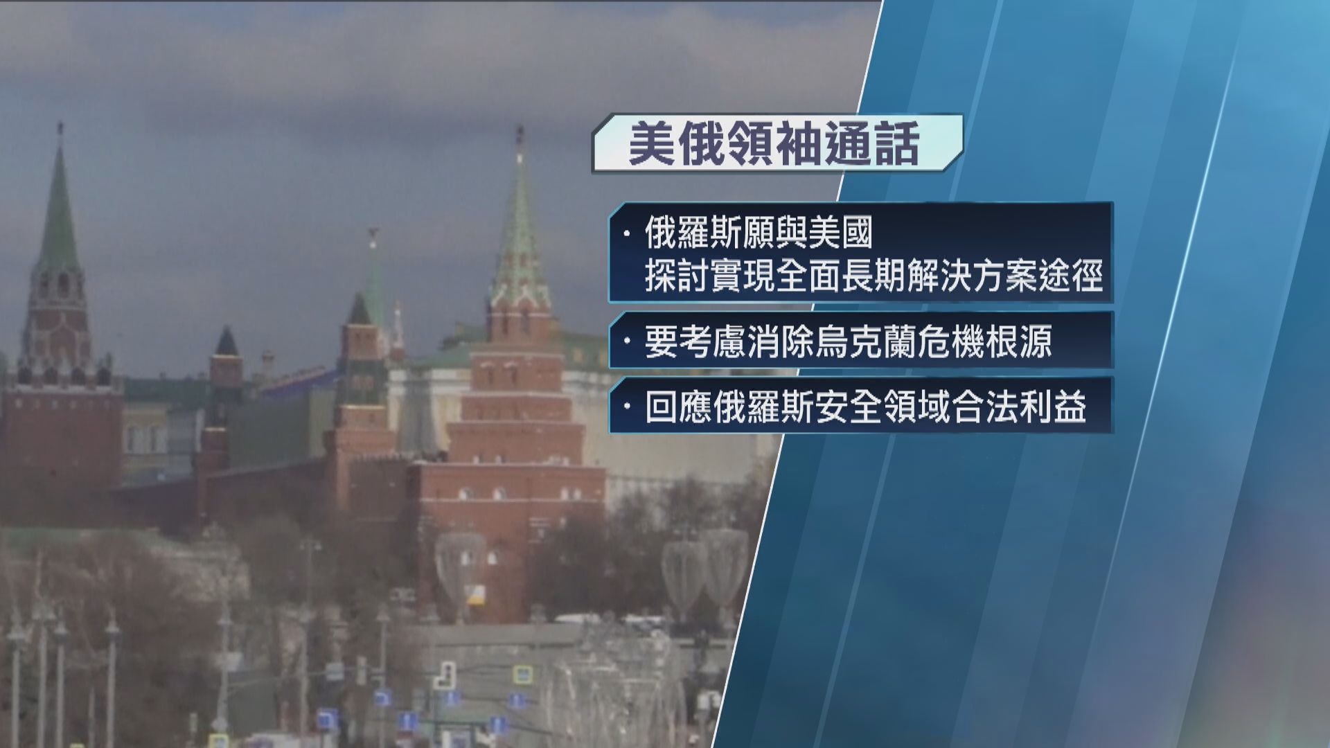 【Now新聞台】美國總統特朗普說,將於周二與俄羅斯總統普京對話,或會公布俄烏談判相關消息。俄方重申不接受烏克蘭加入北約,以及外國派駐軍事部隊到烏克蘭。