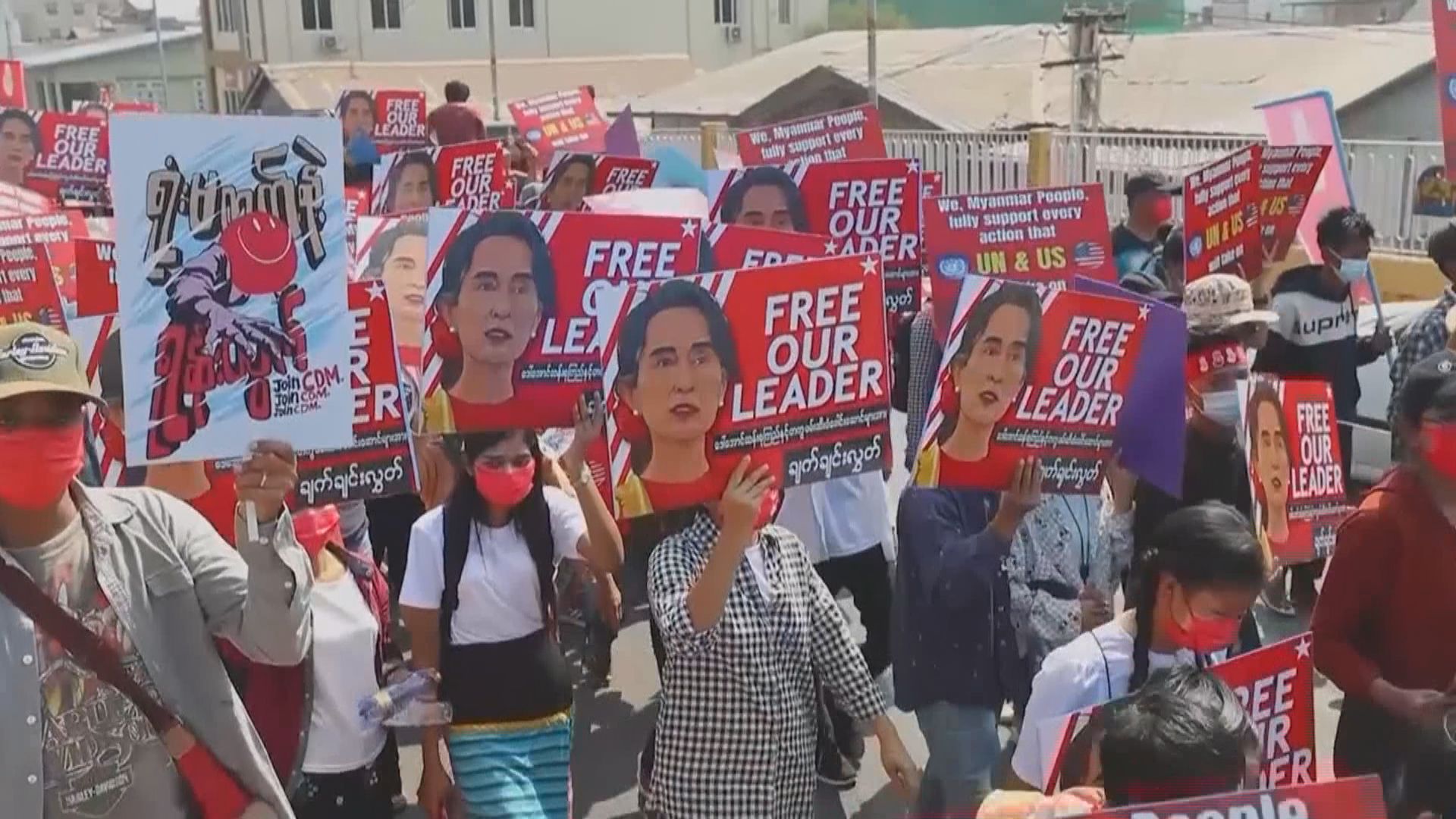 【Now新聞台】被指違反進出口法的緬甸國務資政昂山素姬,扣押期周一屆滿,緬甸多地繼續有民眾上街,抗議軍方發動政變,但軍政府態度未有軟化,據報已拘捕超過三百人,更恢復多項管制公眾的法例。
