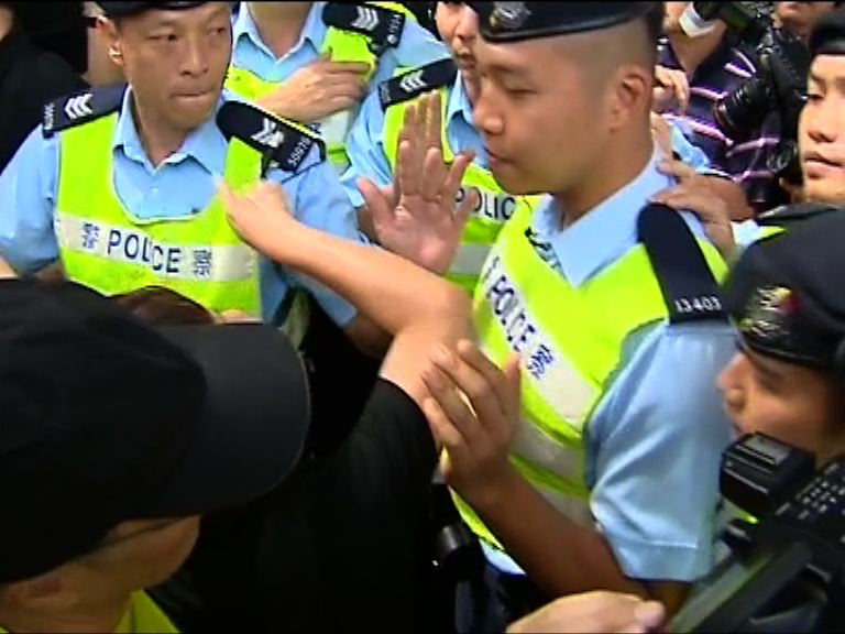 【now新聞台】警方正式落案起訴涉嫌毆打公民黨成員曾健超的七名警員,全部被控意圖導致他人嚴重受傷,其中一人被多控一項普通襲擊罪,七人全部獲准保釋。曾健超同日亦被警方落案控告,包括襲警等五項罪名,兩宗案件同樣下周一提堂。律政司司長袁國強解釋,同日處理兩宗案件是基於公平公正原則,並非要淡化七警被起訴事件。