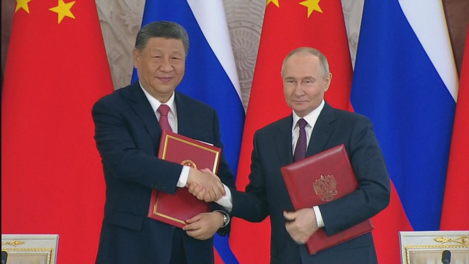 【Now新聞台】國事訪問俄羅斯的國家主席習近平,與俄羅斯總統普京舉行會談。習近平指,面對國際上單邊主義逆流和強權霸凌行徑,中方將同俄方一道肩負起責任,堅決捍衛中俄兩國權益。普京則強調中俄合作是為人民福祉,而非針對其他國家。