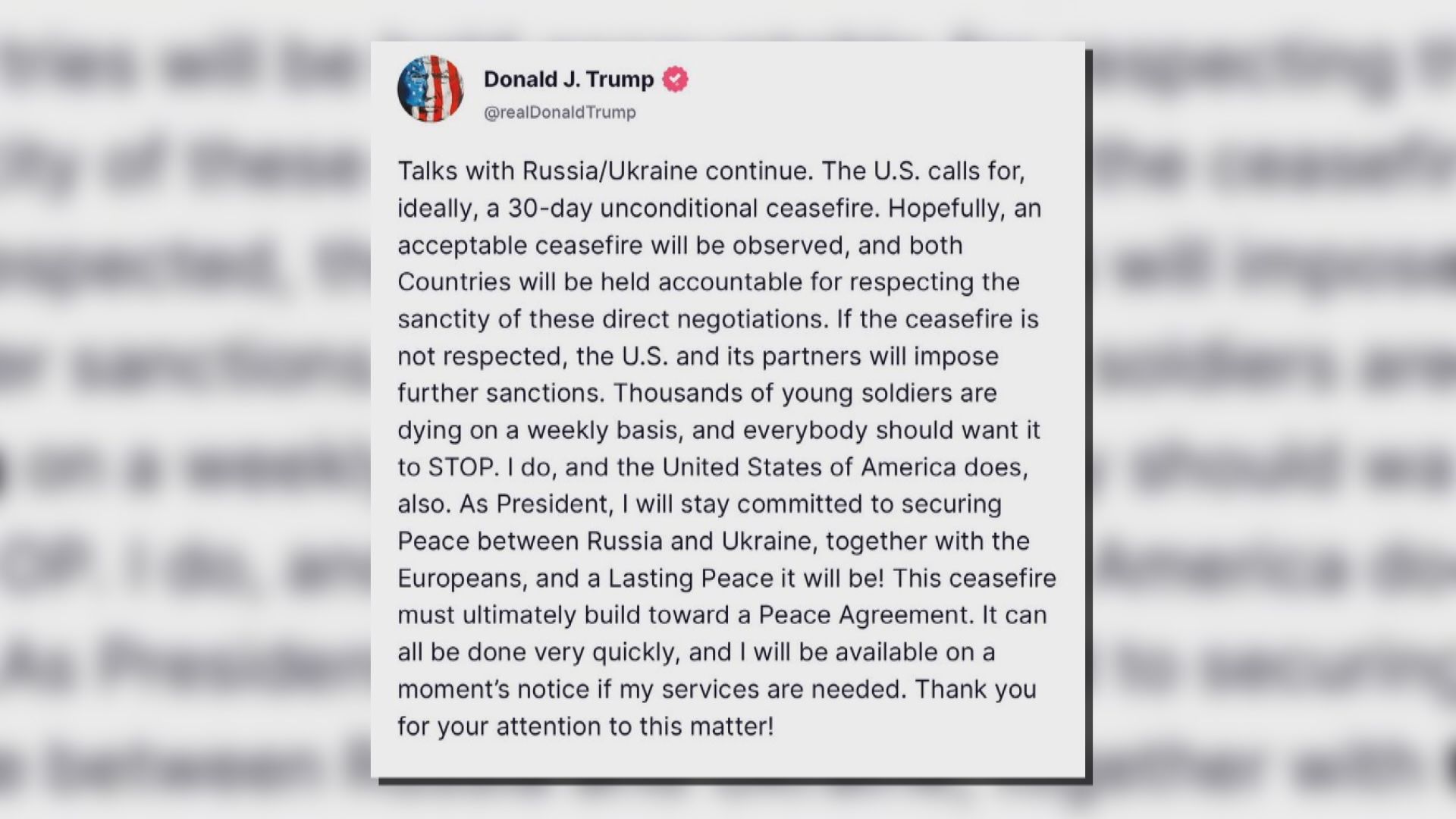 【Now新聞台】美國總統特朗普呼籲俄羅斯與烏克蘭達成30日無條件停火,又與烏克蘭總統澤連斯基通話。