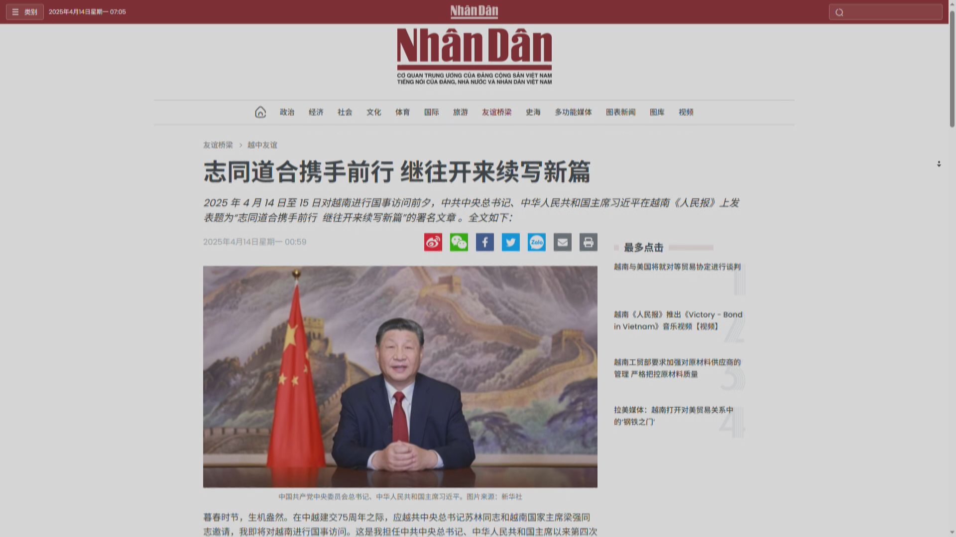 【Now新聞台】國家主席習近平今日展開對越南的國事訪問,他在當地媒體發表署名文章,指出中越要深化戰略互信及密切多邊協作,促進亞洲繁榮。
