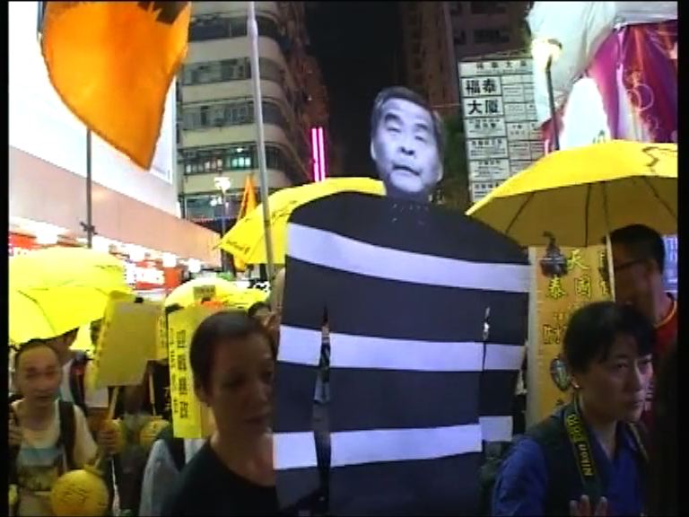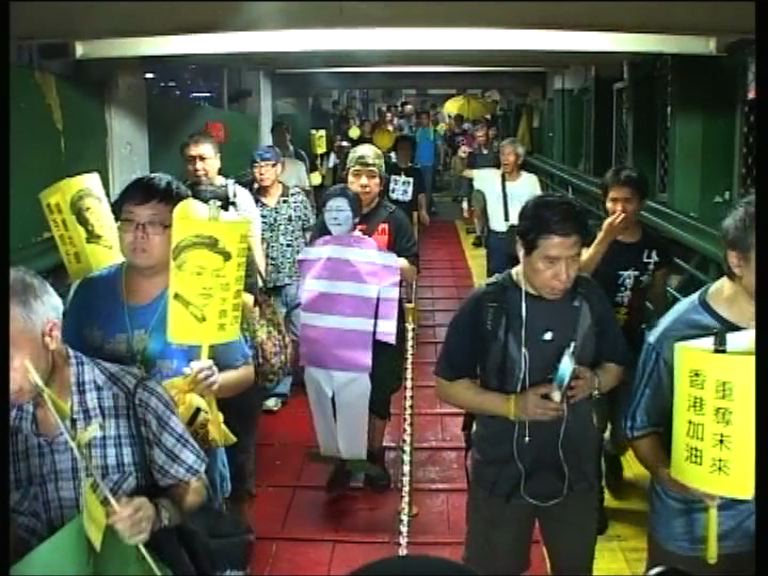 【now新聞台】有市民響應網上號召,由旺角遊行至政府總部,紀念佔領運動將近一周年。