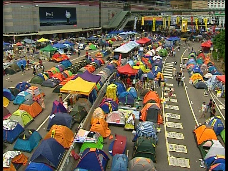 【now新聞台】明天是佔領行動一周年,學聯及學民思潮連續第二日在立法會示威區舉辦公民退修活動。