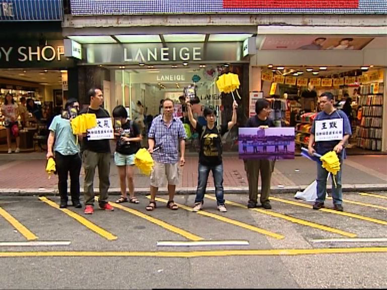 【now新聞台】一批市民自發到各區以快閃方式請願,希望市民關注在內地因為聲援香港佔領行動被補的人士。