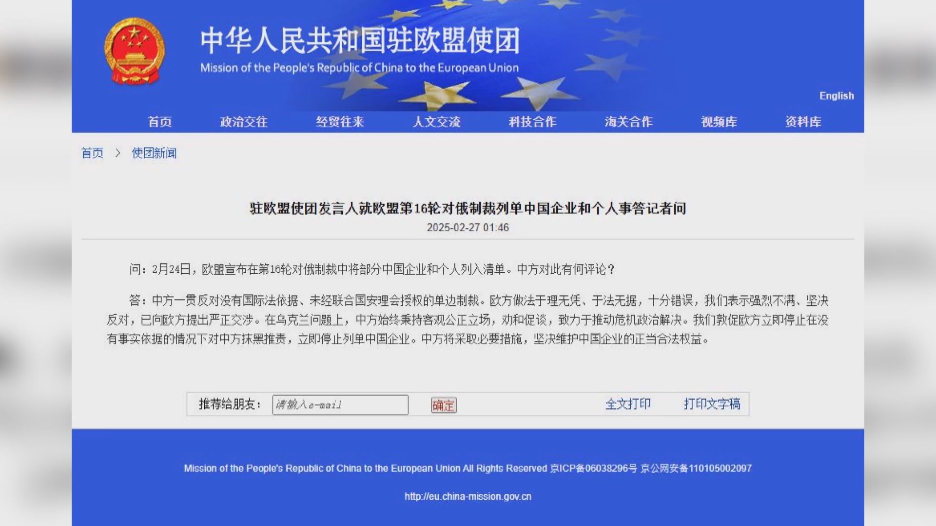 【Now新聞台】歐盟公布新一輪對俄制裁,將部分中國企業和個人列入制裁清單。中方批評歐盟做法十分錯誤,並表示強烈不滿及堅決反對。