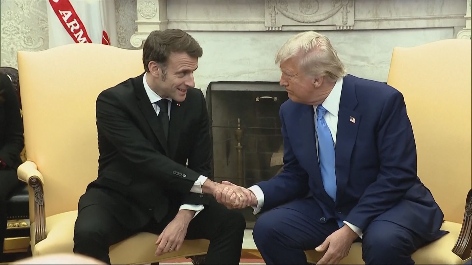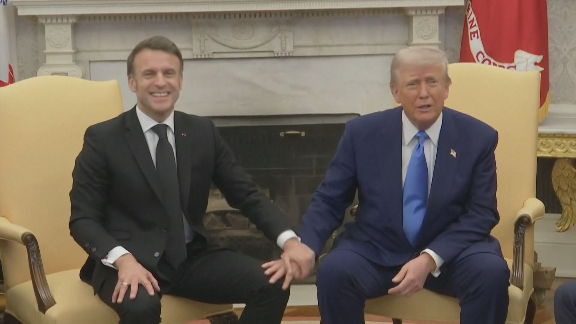 【Now新聞台】美國總統特朗普與法國總統馬克龍會晤,討論俄烏局勢。特朗普指,現在是時候結束流血衝突,亦可能是結束戰事的唯一時機。他又稱,俄羅斯總統普京願意接受派駐歐洲維和部隊到烏克蘭。馬克龍則表示,歐洲願意肩負解決俄烏戰事責任,但需要美國參與才能實現持久和平。