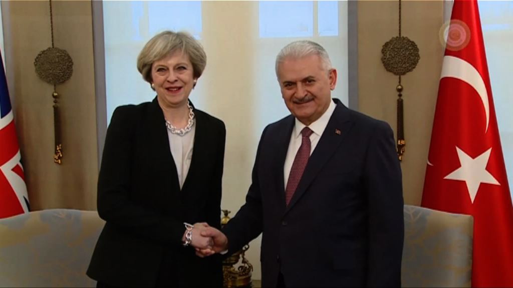 【Now新聞台】英國首相文翠珊轉抵土耳其訪問,雙方簽署高達一億英鎊協議,英國將協助土耳其發展。