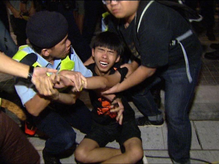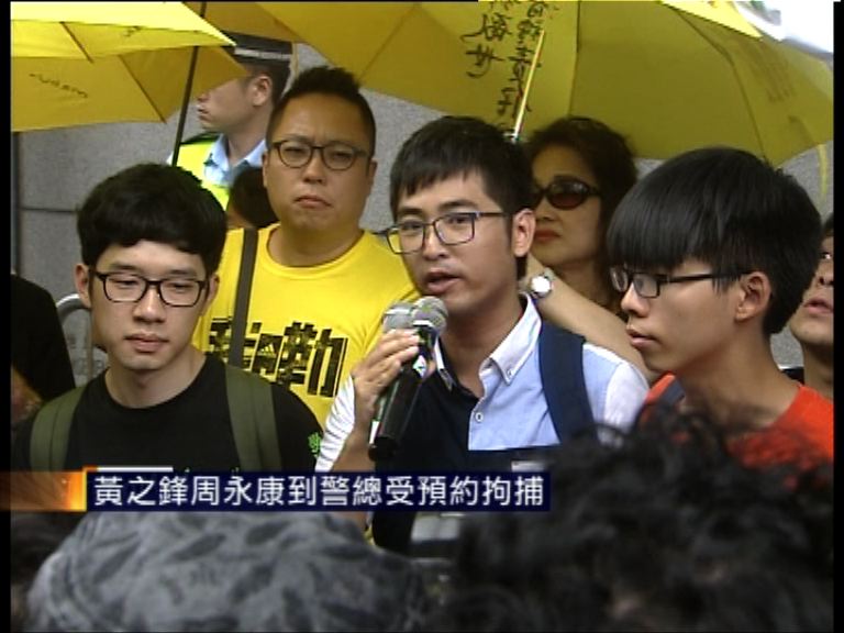 【now新聞台】學聯秘書長羅冠聰、前學聯秘書長周永康和學民思潮召集人黃之鋒,就去年9月26日衝入政總東翼前地,到警察總部接受預約拘捕。