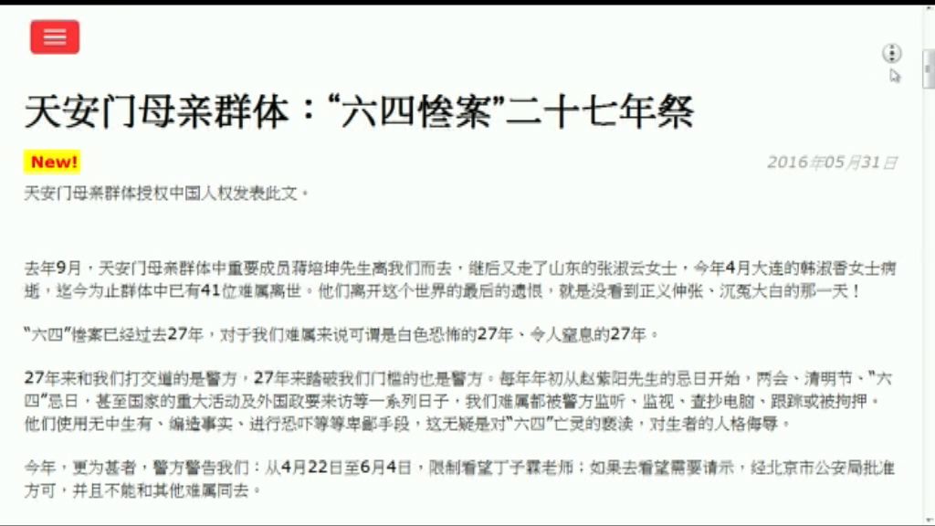 【now新聞台】六四事件臨近27周年,天安門母親發表聯署公開信,譴責政府至今未能解釋她們的子女當年死亡的原因。