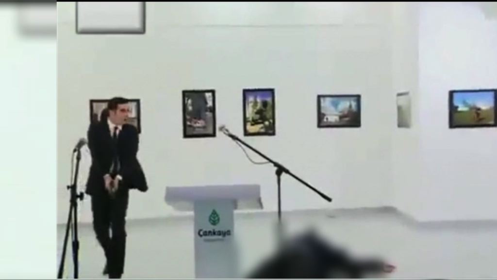 【Now新聞台】俄羅斯駐土耳其大使遭槍擊身亡,槍手是土耳其休班防暴警察,動機懷疑是不滿俄羅斯軍事介入敘利亞,當局正調查是否與恐怖組織有關。土耳其和俄羅斯總統都指襲擊是挑釁行為,意圖破壞兩國關係。