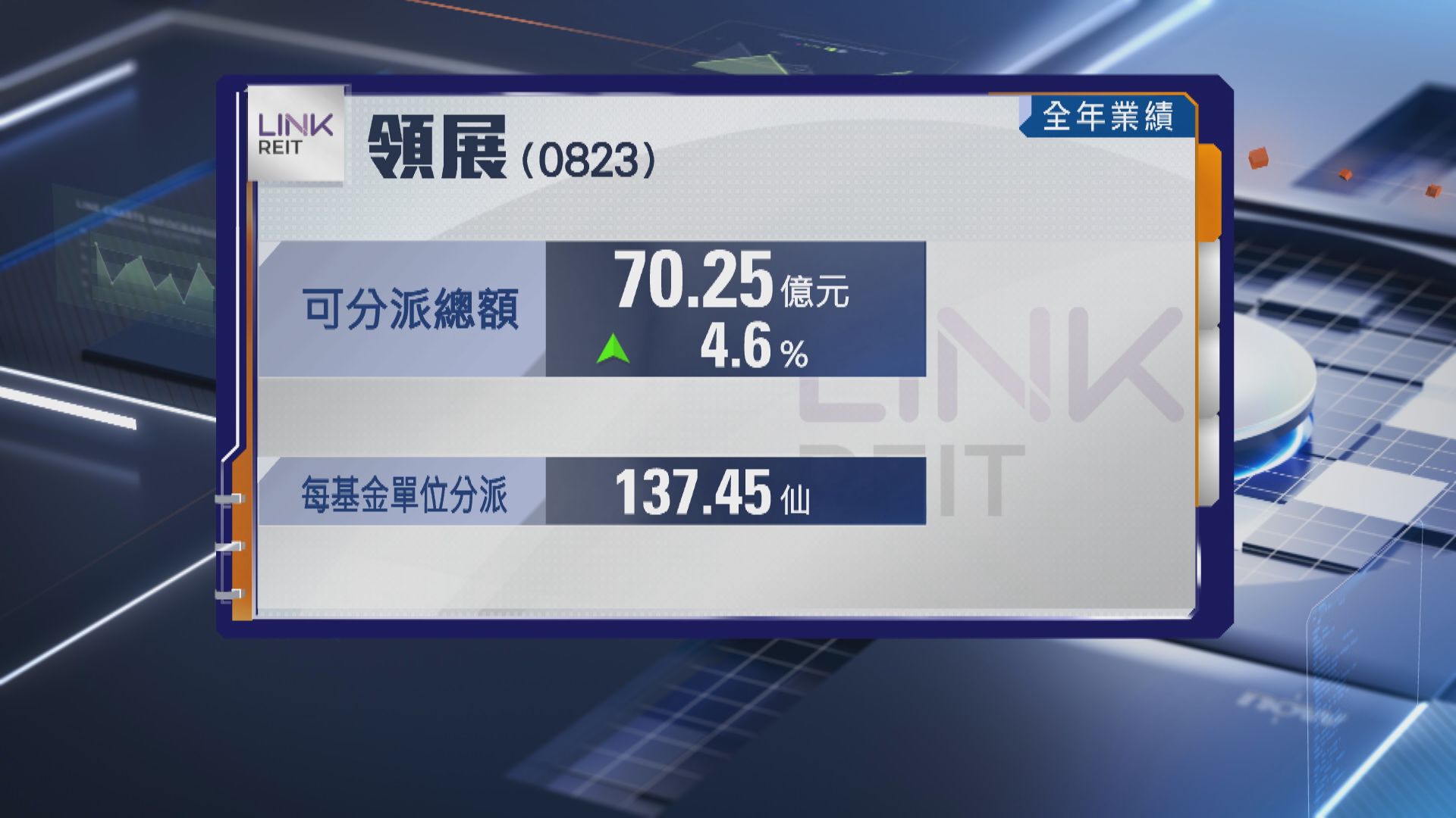 【Now新聞台】領展房產基金去年可分派總額升逾4%。
