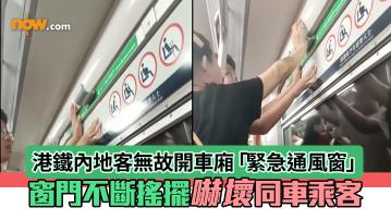 【Now.com】近日有內地旅客在港鐵列車行駛途中,打開車廂內的緊急通風窗,其後想關上卻屢試不果,多次出現車窗「又開又關」的驚險情節,相關影片在網上瘋傳,網民直斥行為離譜,威脅其他乘客安全,也有網民揶揄「地鐵咁多人咁焗,梗係開窗通下風」。