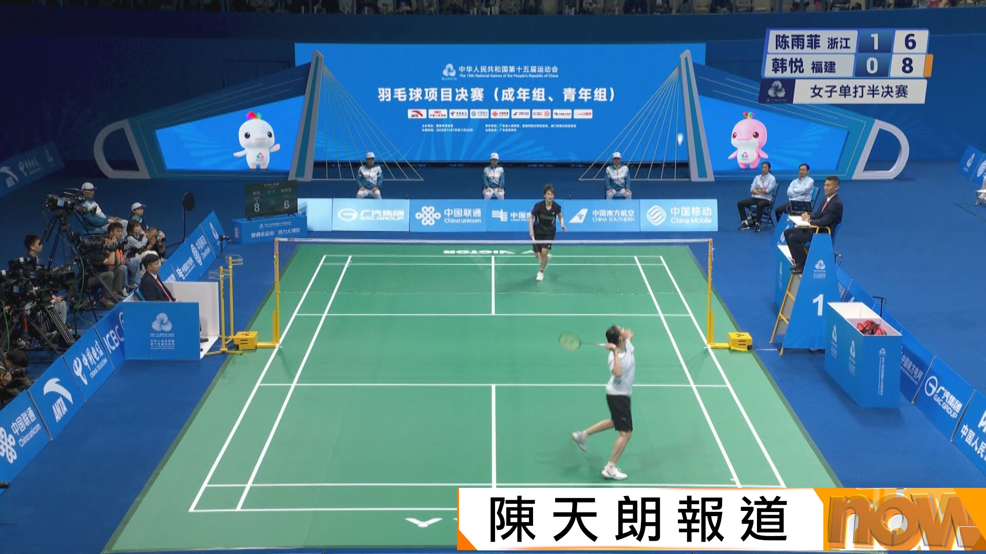 【Now新聞台】全運會羽毛球,福建的翁泓陽晉身男單決賽,而浙江的陳雨菲直落兩局淘汰福建的韓悅,將會與湖北的王祉怡爭女單金牌。