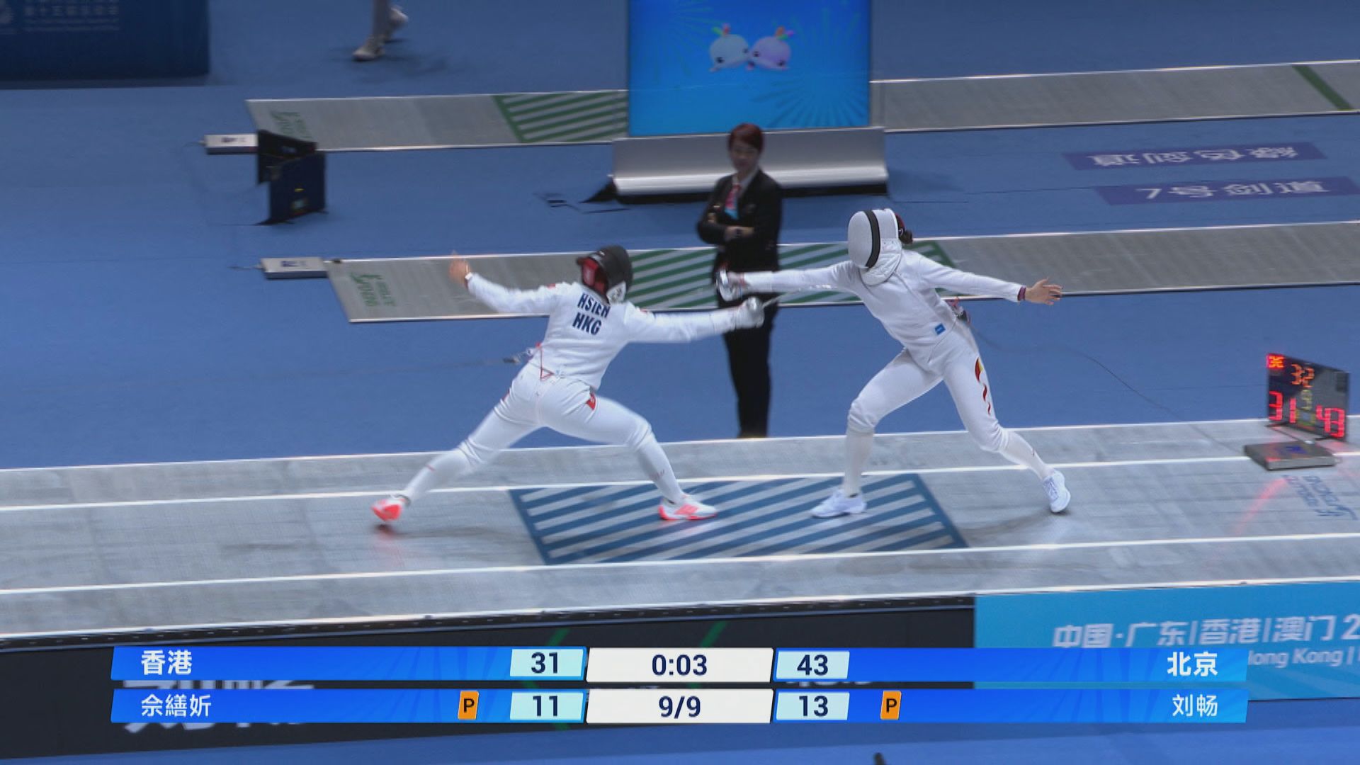 【Now新聞台】全運會女子佩劍團體賽,港隊八強42比45不敵廣東,轉戰名次賽。