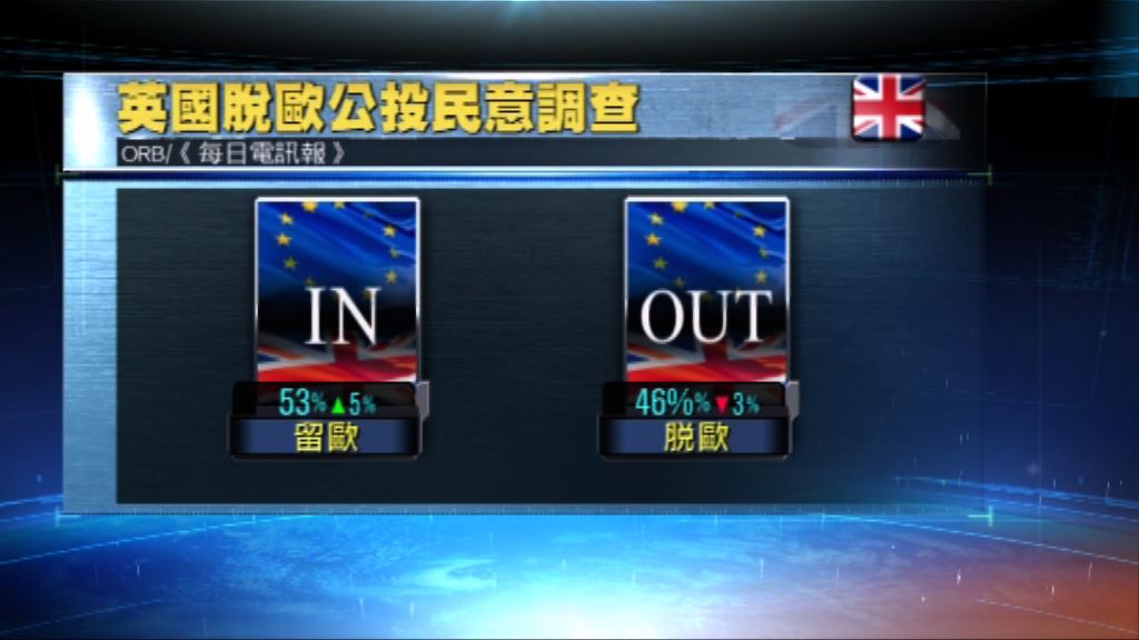 【now新聞台】每日電訊報的一項最新的民意調查顯示,在表明一定會投票的選民當中,有五成三人支持留歐領先脫歐陣營七個百分點。