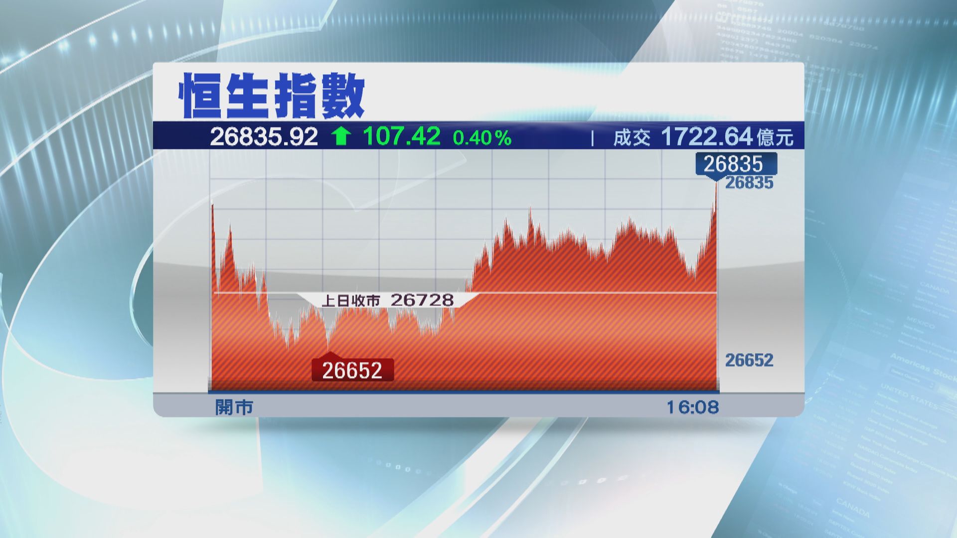 【Now新聞台】本港股市反覆上升,恒生指數重上26800點,總結一周恒指跌58點,扭轉對上四周升勢。