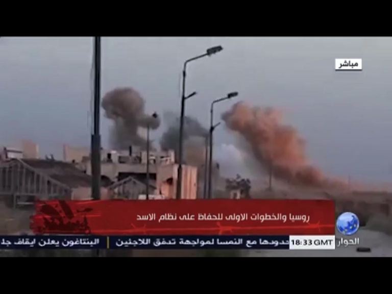 【now新聞台】俄羅斯戰機連續第二天在敘利亞發動空襲。俄方聲稱擊中多個伊斯蘭國目標,但有由美國中情局訓練的反對派部隊指,他們的訓練營被俄軍轟炸。美、俄兩國軍方高層召開視像會議,商討如何避免擦槍走火。有報道指,伊朗已派士兵到敘利亞,準備在俄羅斯空中支援下,與敘利亞政府軍展開地面攻勢,奪回被反對派佔據的地方。