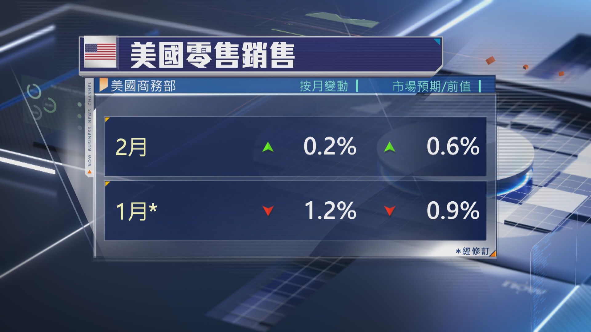 【Now新聞台】美國周一公布多項經濟數據,其中2月零售銷售增長差過預期,令市場憂慮美國在關稅戰下的經濟增長前景。