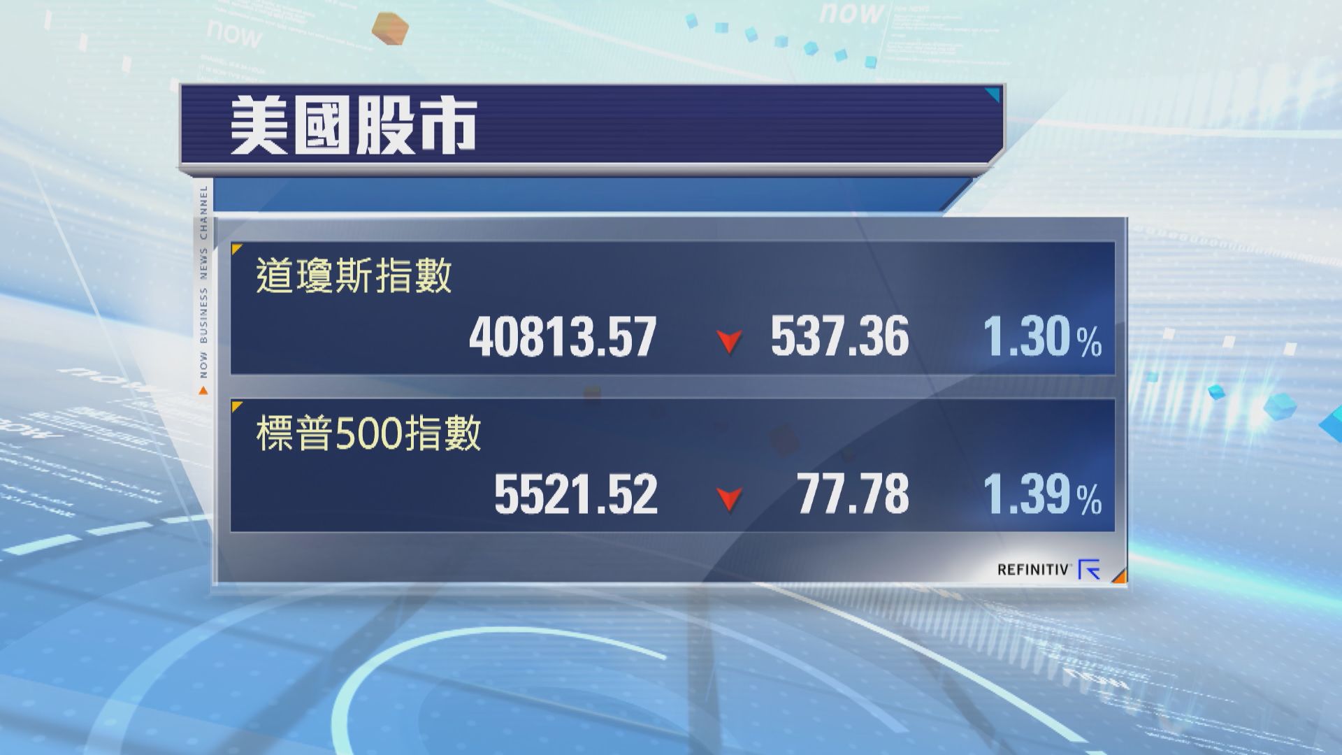 【Now新聞台】華爾街股市下挫,其中標普五百指數技術上進入調整區,道瓊斯指數則連跌4天,跌逾500點。