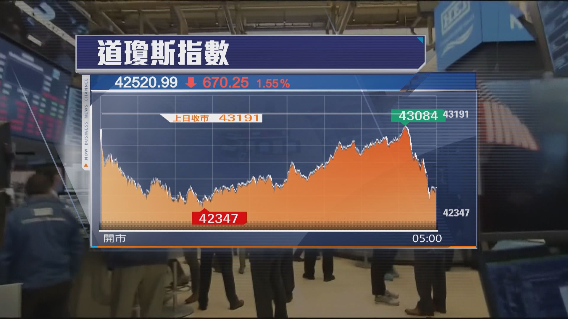 【Now新聞台】華爾街股市連跌2天,其中道瓊斯指數和標普五百指數跌逾1%,道指曾經跌逾800點。