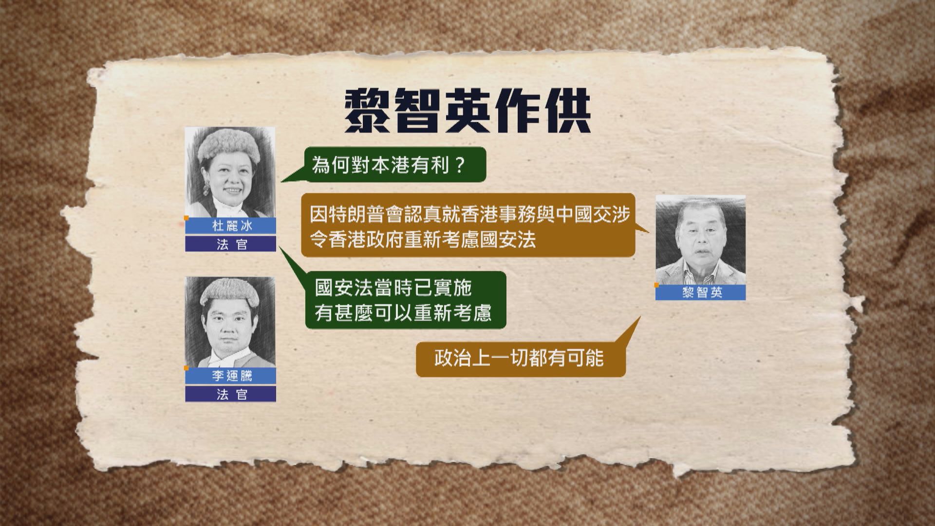 【Now新聞台】黎智英國安案續審,他作供時表示希望特朗普在2020年連任,可以影響香港國安法的實施。