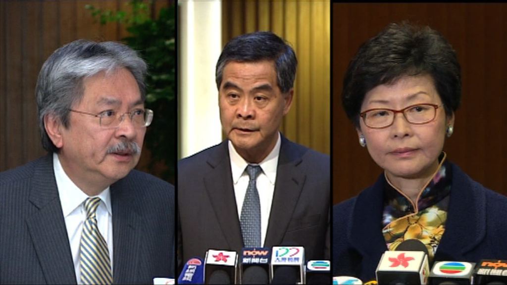 【now新聞台】行政長官梁振英表示,明日會與財政司司長曾俊華一同召開記者會,解釋橫洲項目發展。他拒絕回應政務司司長林鄭月娥和曾俊華昨日先後發聲明澄清,以及為何要親自率領小組處理橫洲發展,只表示會留待明日再回應,又重申政府是上下一心。