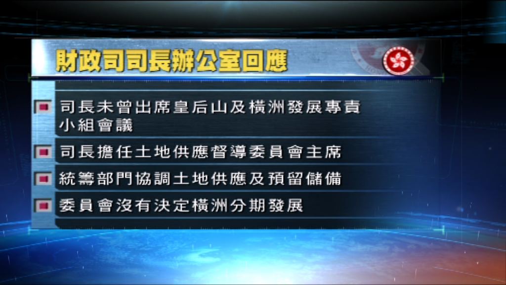 【now新聞台】財政司司長辦公室發言人回應指,曾俊華未曾出席橫洲及皇后山專責小組的會議,而由他領導的土地供應督導委員會沒有決定分期發展橫州。
