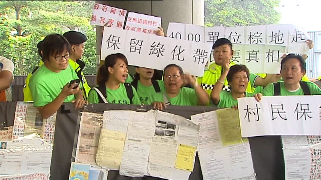 【now新聞台】受橫洲興建4000個公屋單位影響的三條村村民,向行政長官梁振英請願。