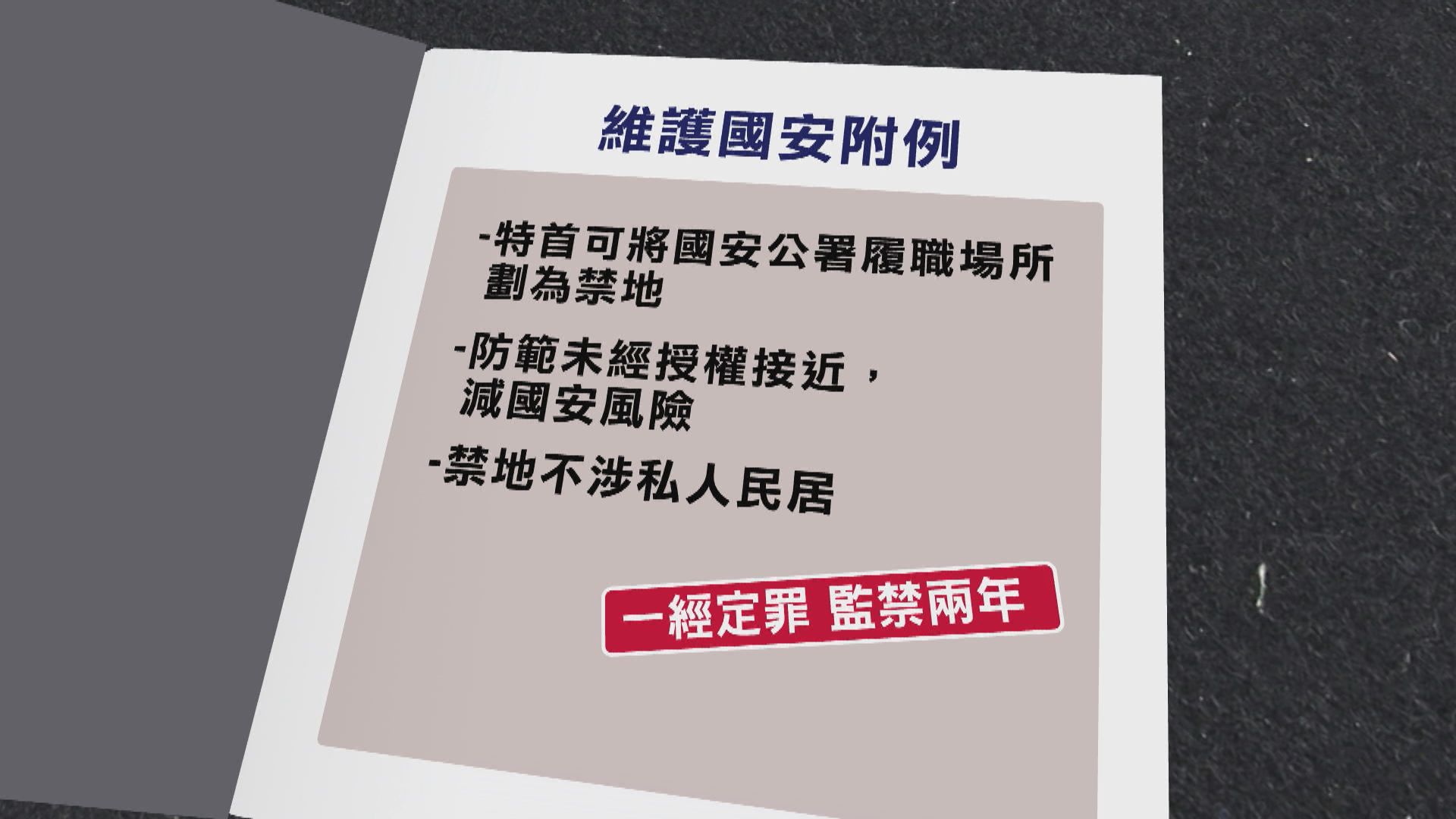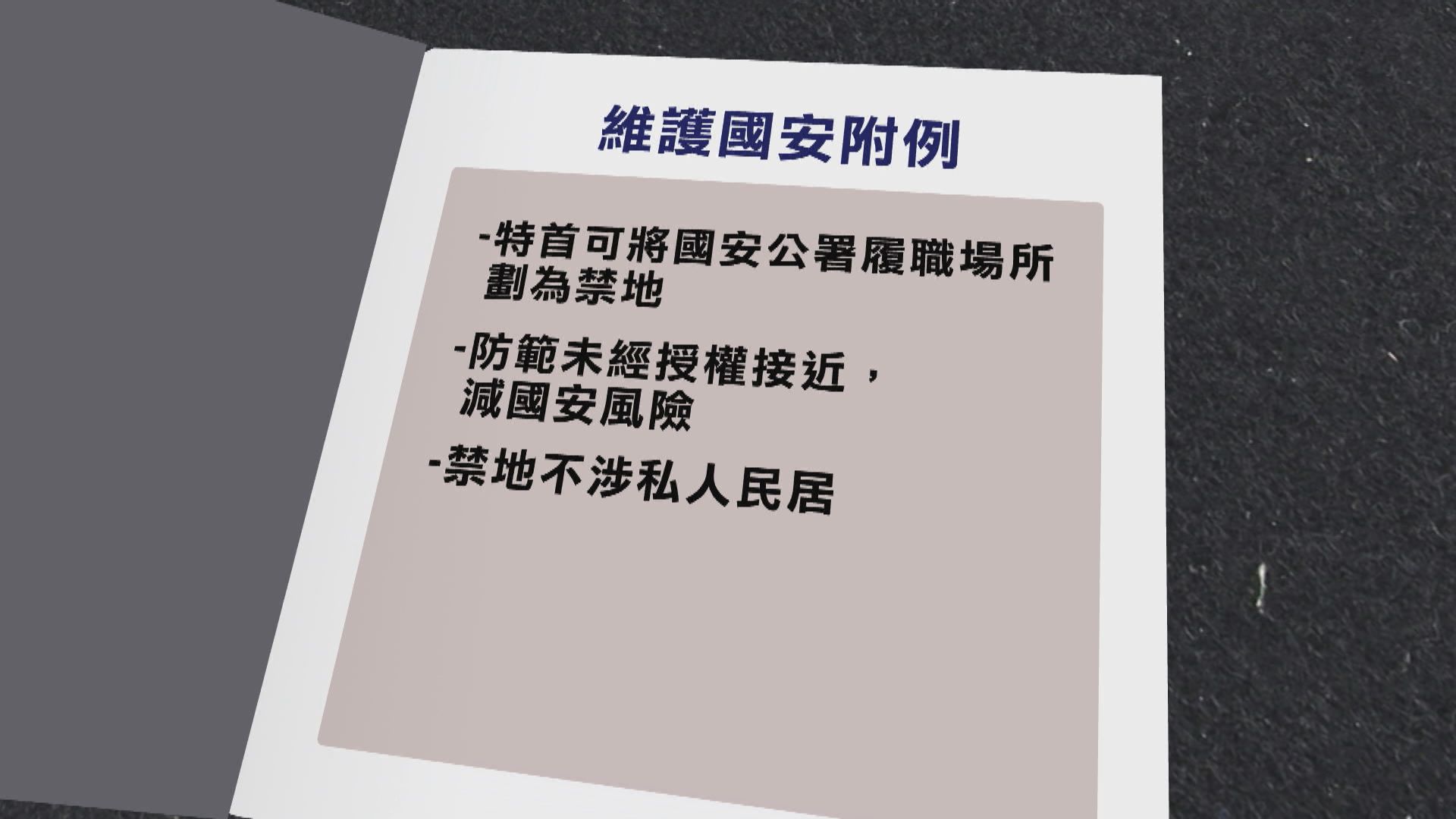 【Now新聞台】政府以「先訂立、後審議」方式,制訂維護國家安全附屬法例,落實國安公署的職責,而若特首認為需維護國安,可刊憲將國安公署履職場所劃為禁地。