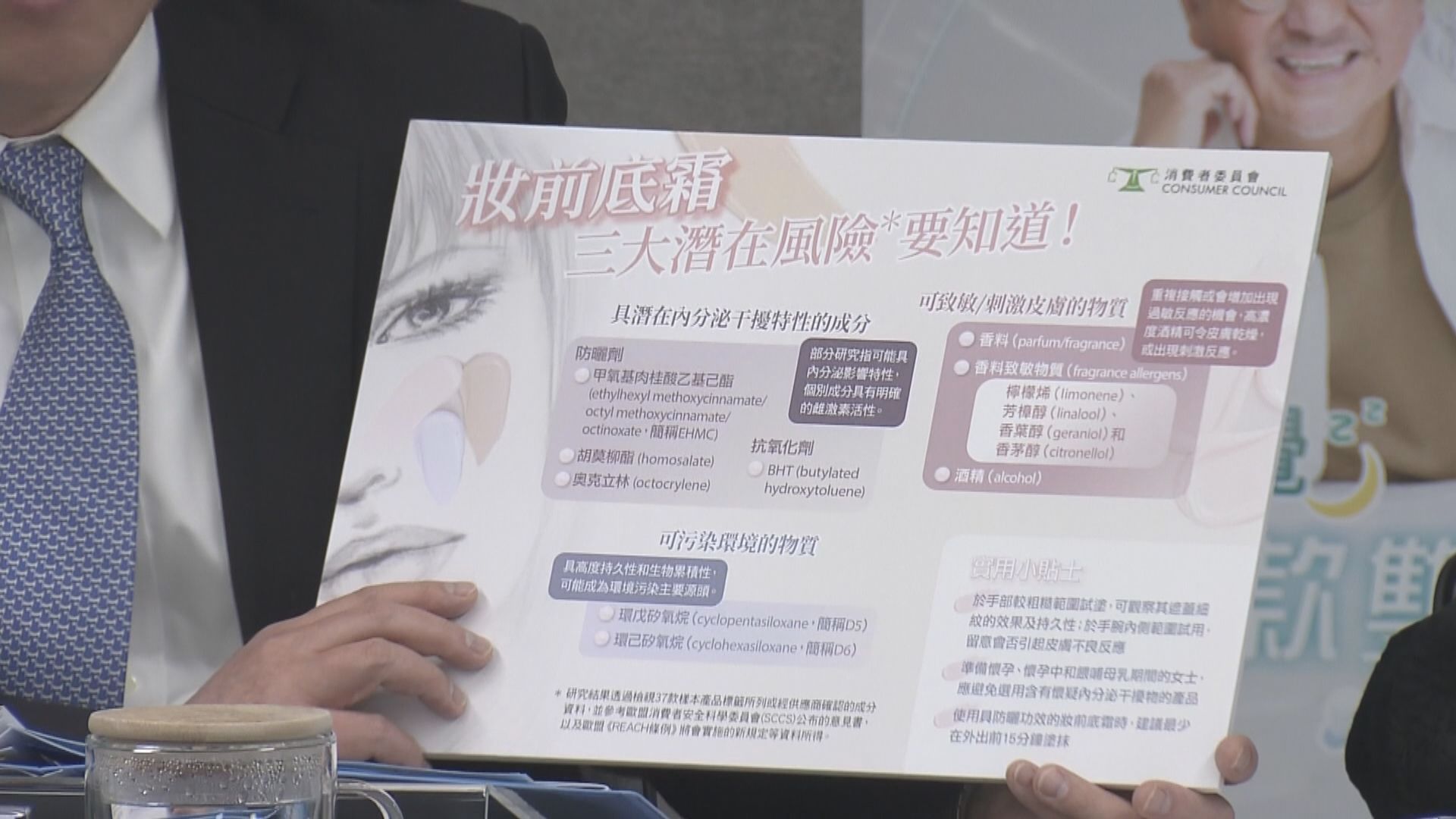 【Now新聞台】消委會調查37款底霜,發現大部分有防曬功能的底霜都含有可能干擾內分泌的成分,建議關注組織及衞生組織共同制訂優先關注清單,增加消費者安全意識。