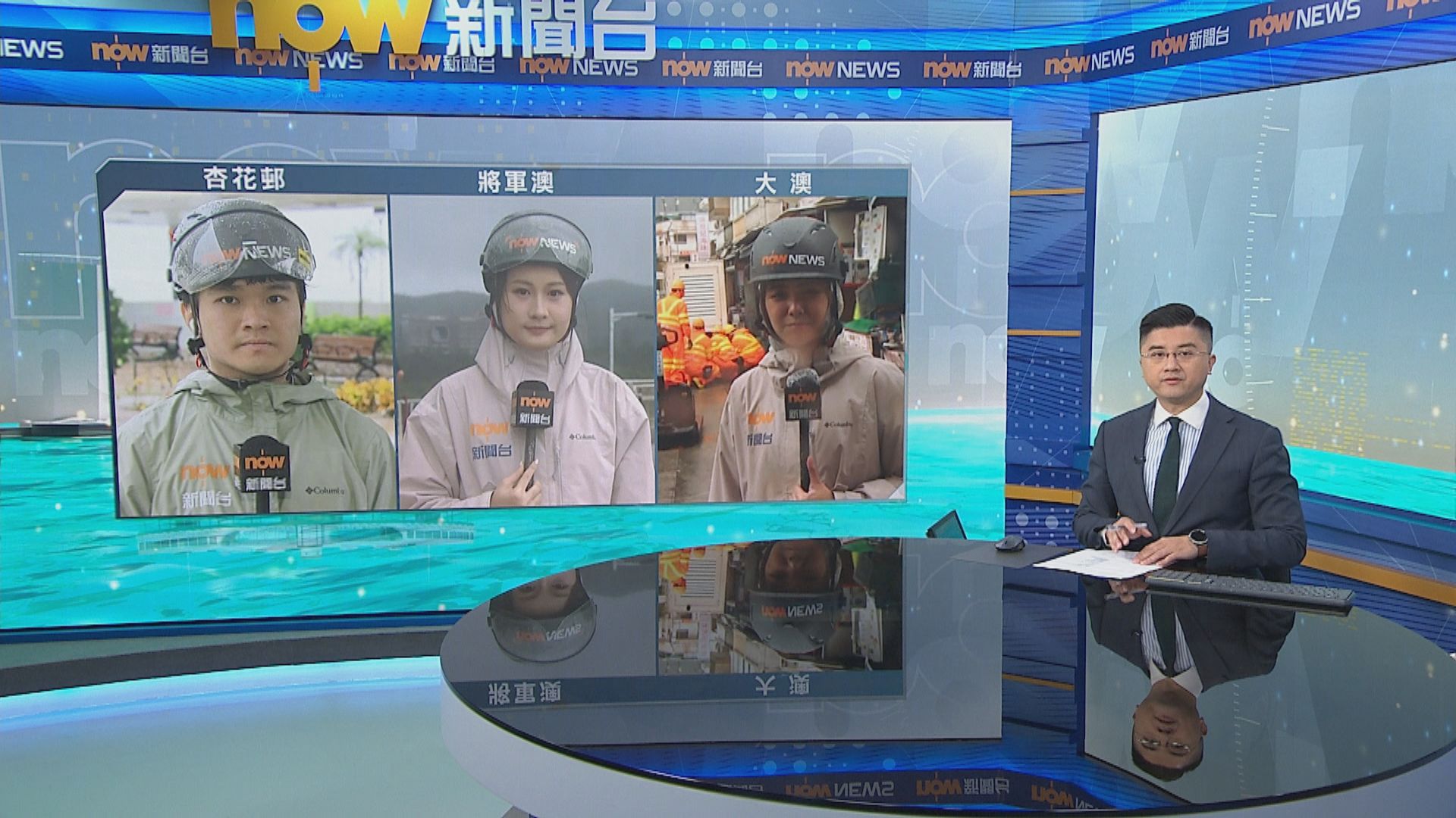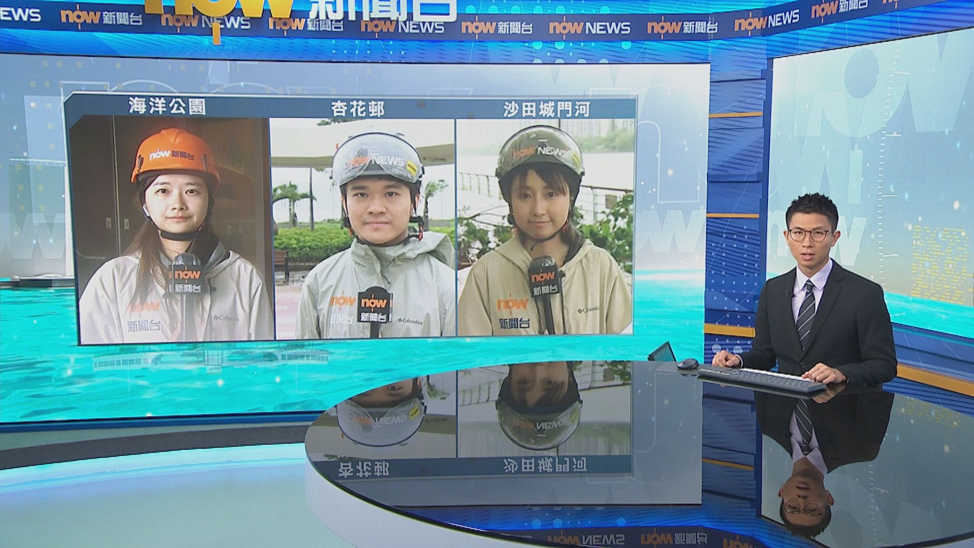 【Now新聞台】十號颶風信號仍然生效,本台記者李昌峻、湯偉圓及車軒珩,中午12時分別在杏花邨、海洋公園及沙田城門河三處。