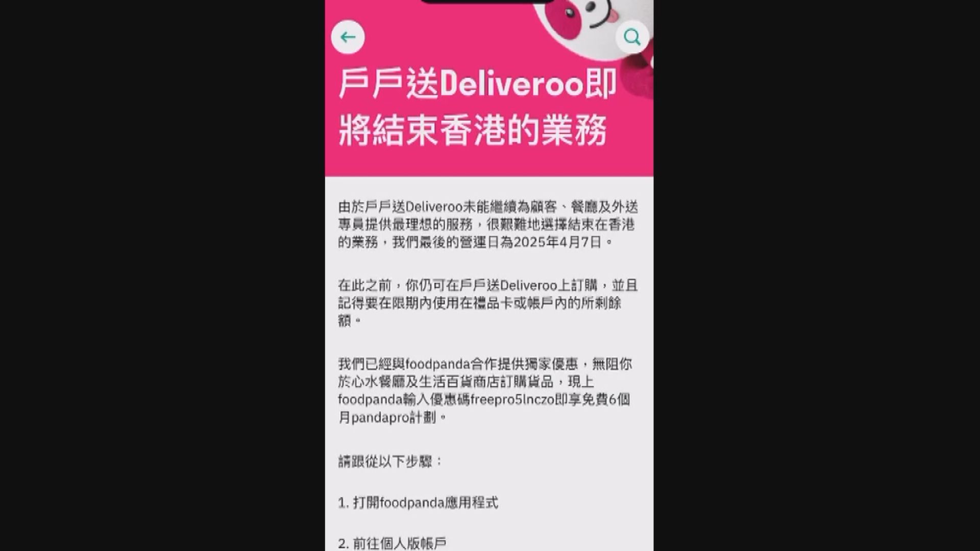 【Now新聞台】外賣平台戶戶送撤出香港市場,將部分資產出售予另一平台foodpanda,現有客戶也會轉至新平台,並享有6個月免費會籍。消委會指,暫時接獲12宗相關投訴,涉款5000多元,最高金額個案約600元,正與平台密切溝通、釐清細節。