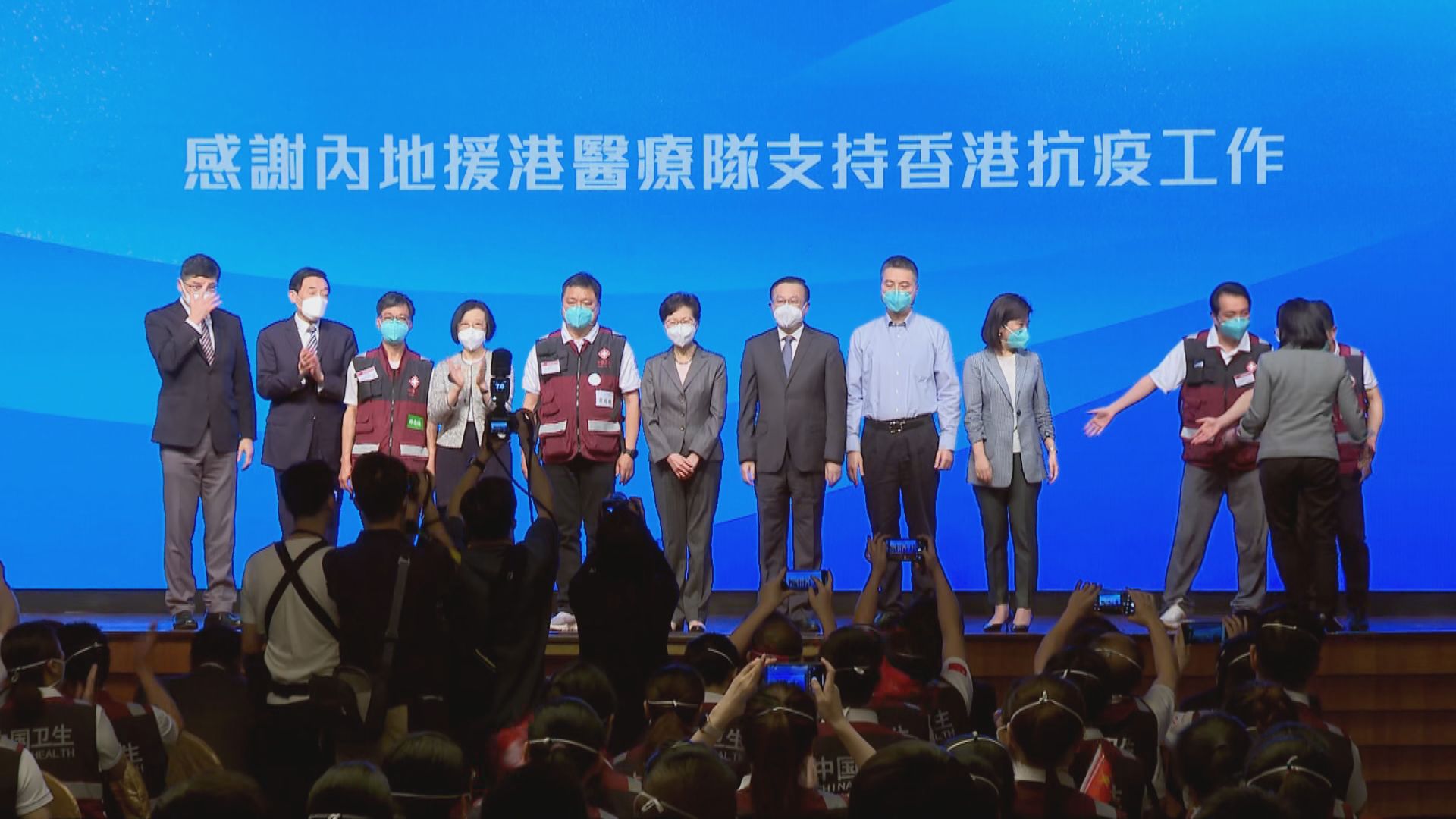 【Now新聞台】最後一批內地援港醫療隊今日啟程返回內地。行政長官林鄭月娥形容,內地與香港醫護合作無間,提升中西醫結合治療能力,對內地醫療隊致以衷心感謝,歡迎他們日後以遊客身份來港。