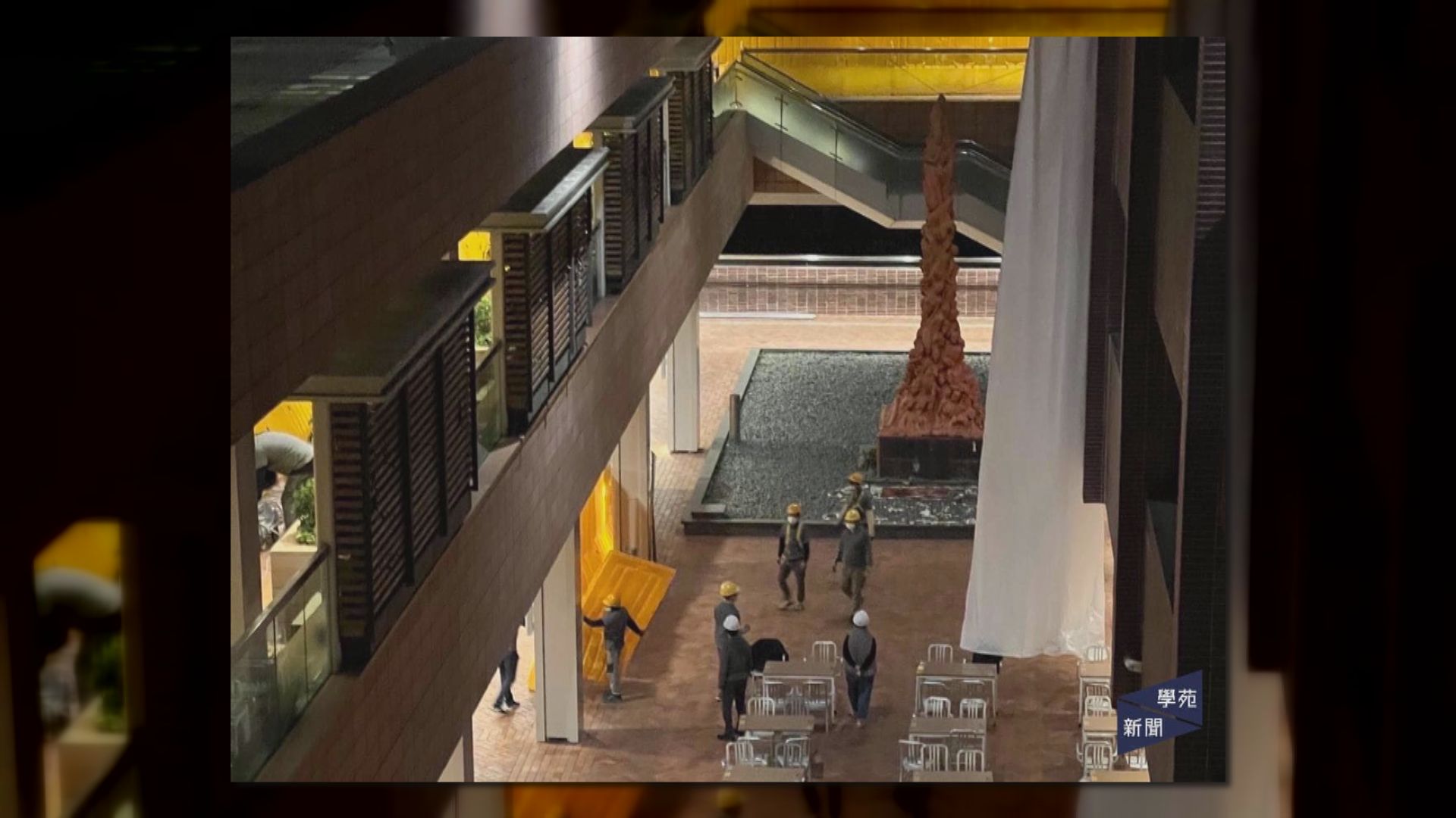 【Now新聞台】有工人晚上以白布圍封放置於香港大學的國殤之柱。