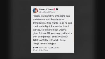 【Now新聞台】烏克蘭總統澤連斯基以及歐洲領袖,在本港時間周二凌晨與美國總統特朗普會面。而會面前夕,特朗普向澤連斯基施壓,聲言烏克蘭必須放棄克里米亞和不可加入北約。