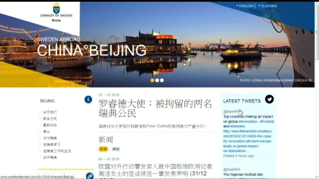 【now新聞台】瑞典駐華大使羅睿德對兩名瑞典公民桂民海及彼得達林被中國拘留,表示嚴重關切。