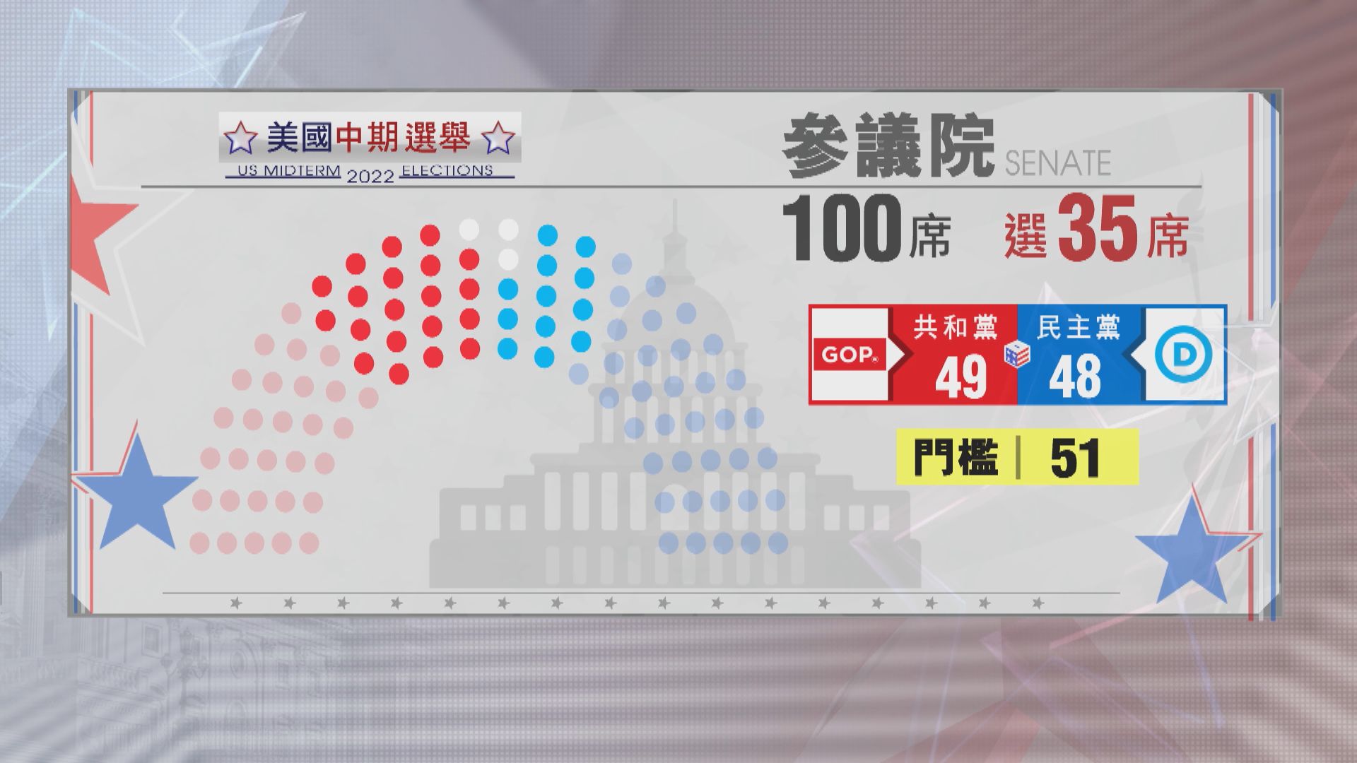 【Now新聞台】美國中期選舉,參議院方面的選情膠著,傳媒推算民主共和兩黨現時均有48席在佐治亞州,沒有候選人取得過半票,需要舉行次輪選舉,意味可能要到下月才知道參議院控制權誰屬。美國總統拜登稱共和黨人預期的「紅色浪潮」未有出現。