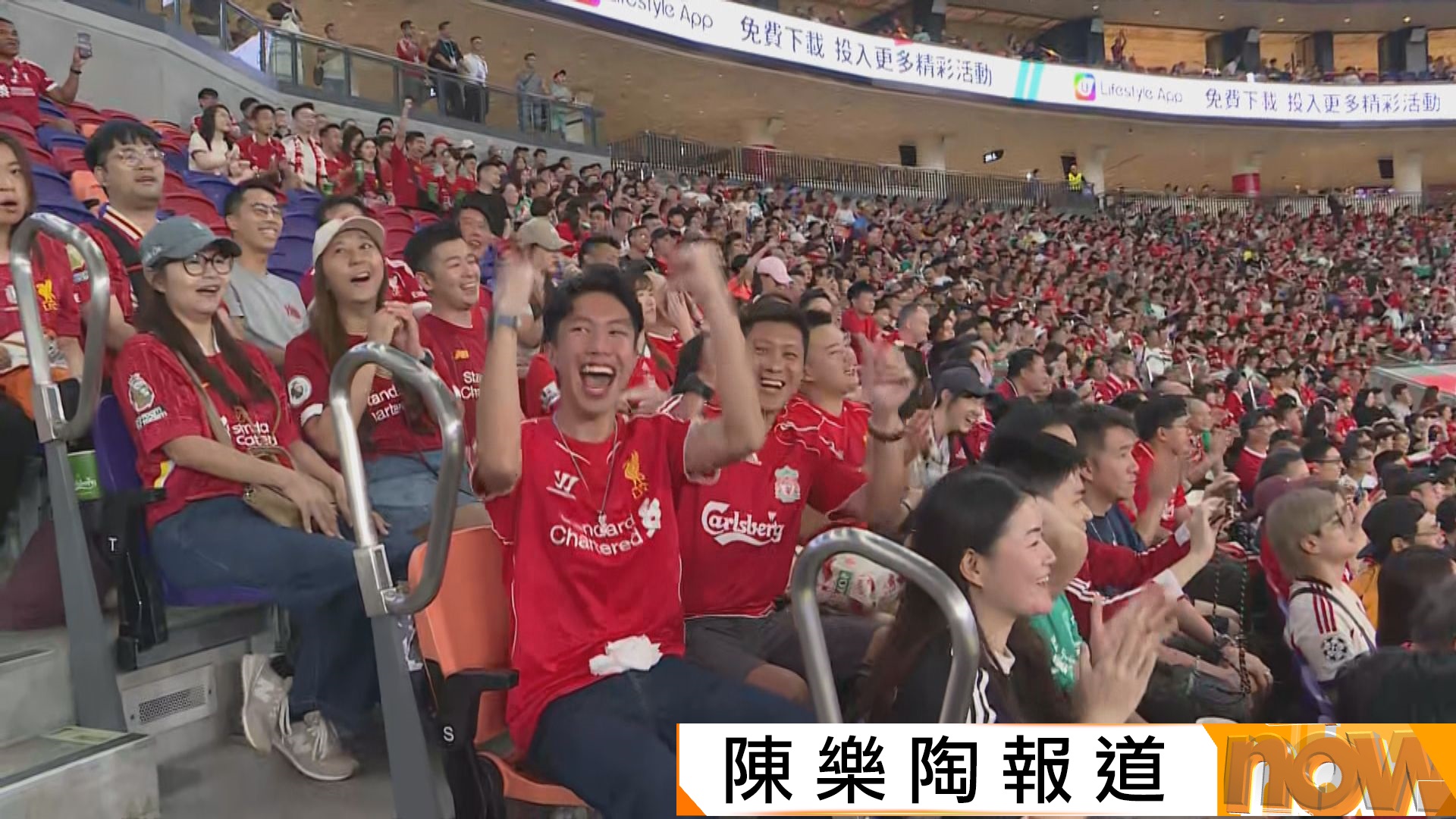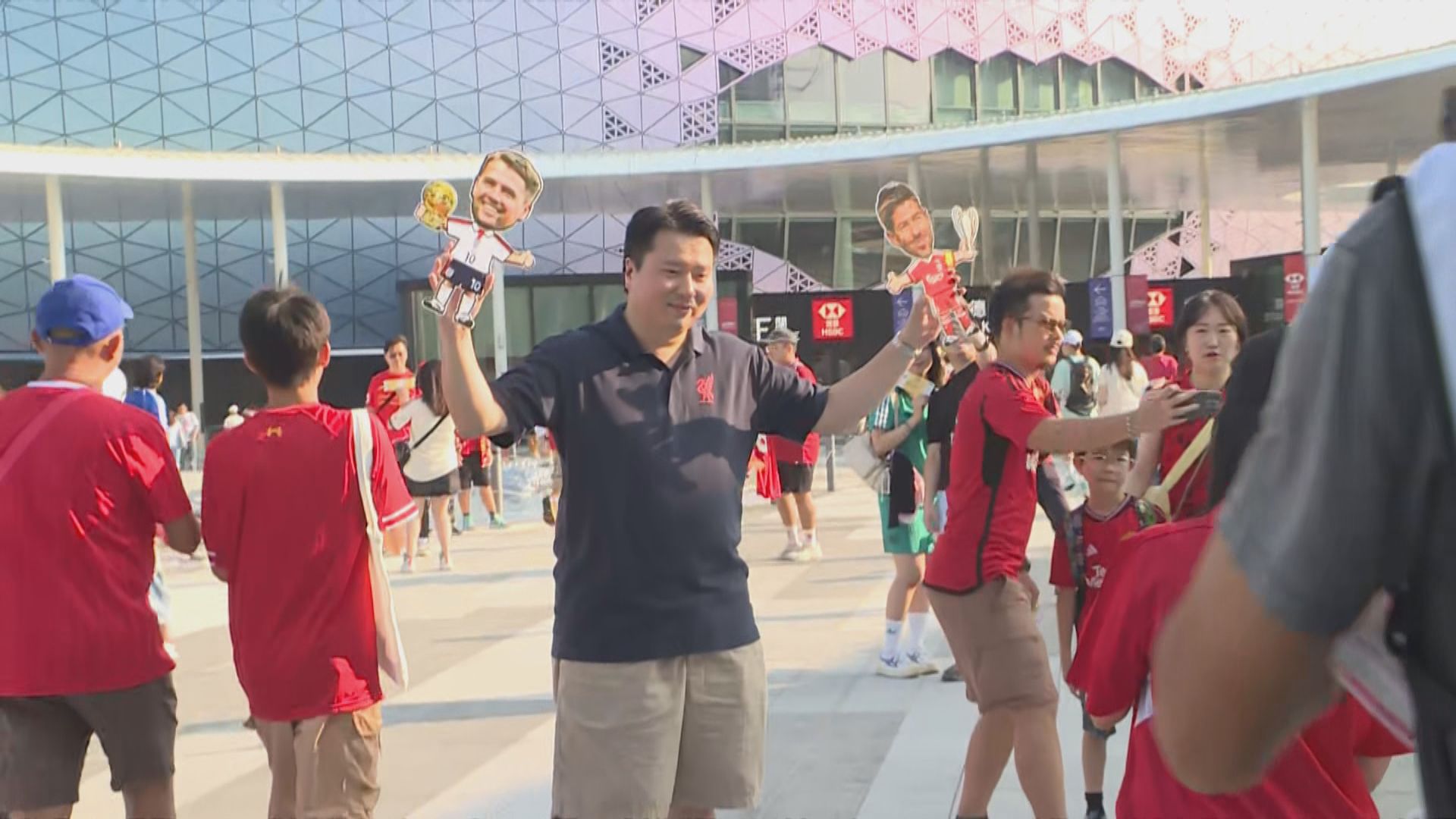 【Now新聞台】利物浦傳奇隊長謝拉特與曼聯名宿里奧費迪南分別領軍,率領英超退役球星在啟德體育園上演表演賽,不少球迷都表示十分興奮,園方指有逾2.7萬人入場。