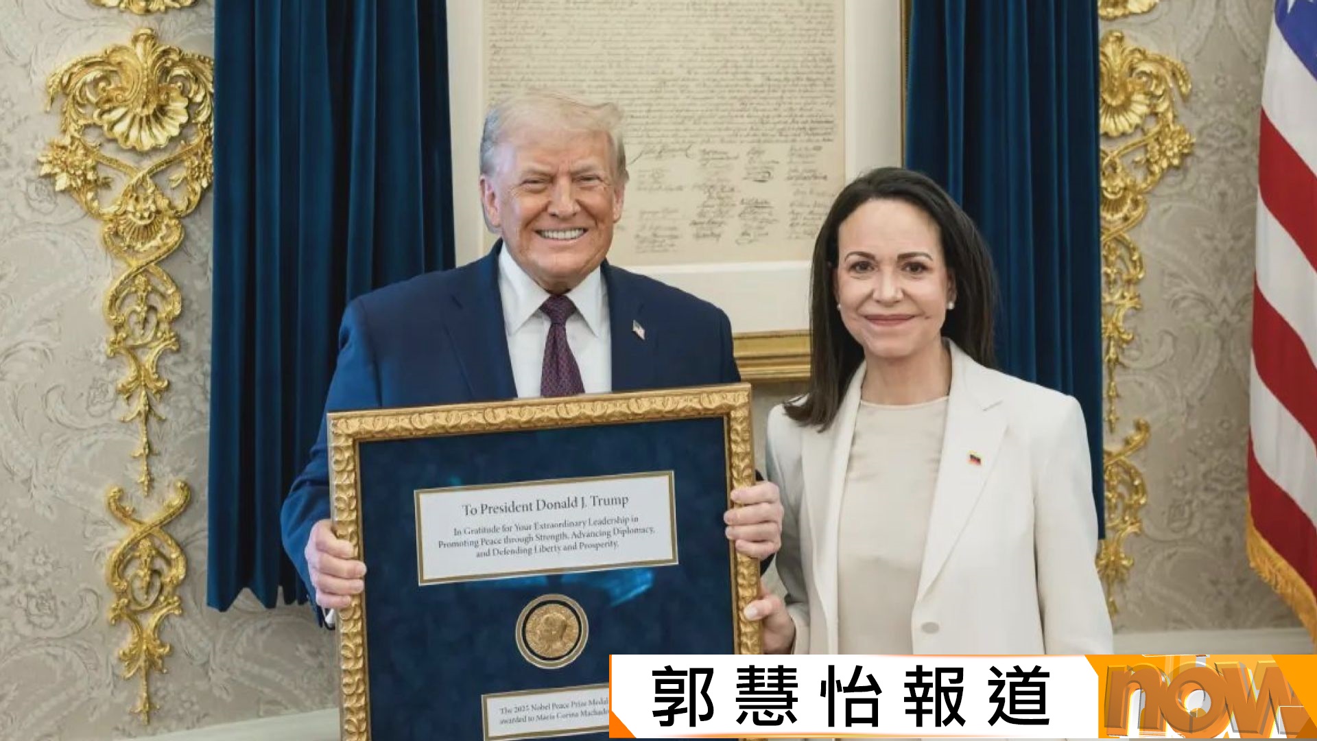 【Now新聞台】委內瑞拉反對派領袖馬查多與美國總統特朗普會面,馬查多透露已將諾貝爾和平獎獎章贈予特朗普。
