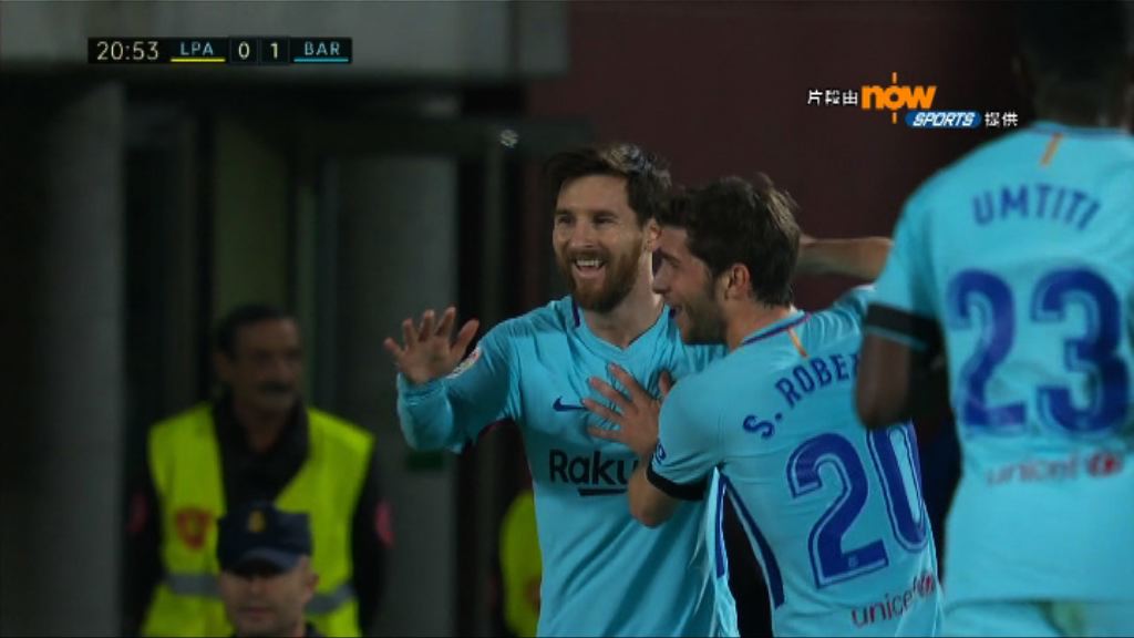 【Now新聞台】西班牙甲組足球聯賽,榜首的巴塞羅那作客領先一球之下被拉斯彭馬斯迫和。