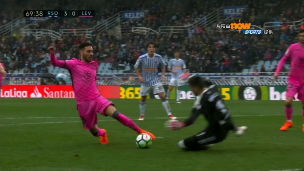 【Now新聞台】西班牙甲組足球聯賽,主場的馬德里體育會憑基斯文上演「大四喜」,以4比0大勝雷加利斯。