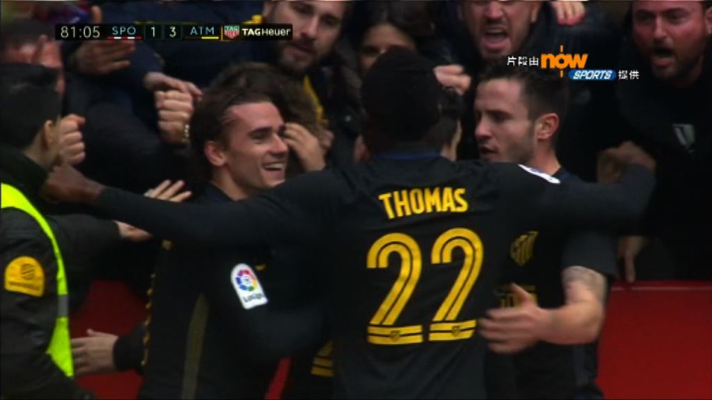 【Now新聞台】西班牙甲組足球聯賽,馬德里體育會主場3比2反勝切爾達,升上第4位。